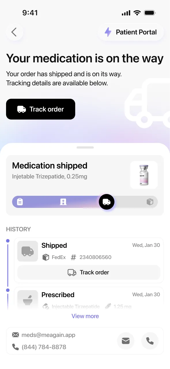 Track the plan, dose, meals, and milestones in one place that actually keeps up with your day.