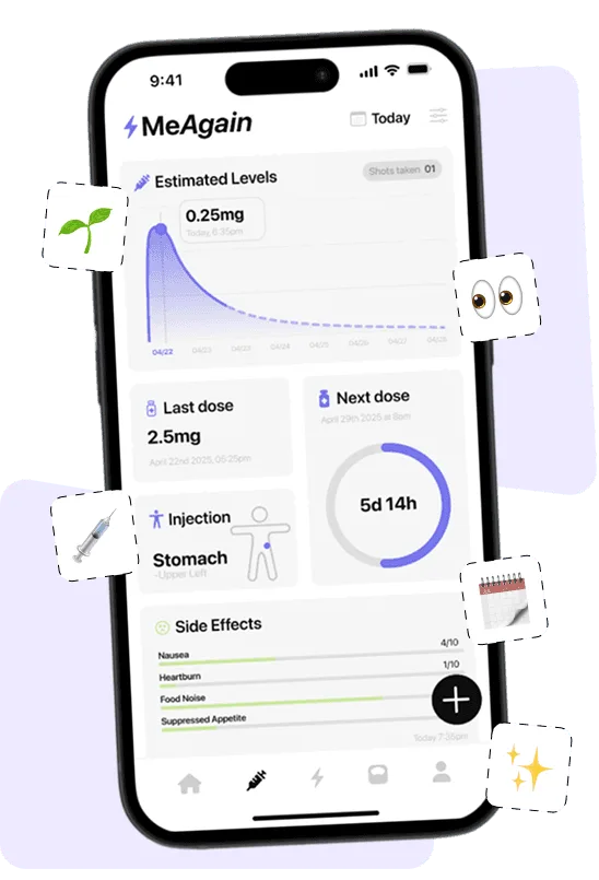 Track the plan, dose, meals, and milestones in one place that actually keeps up with your day.